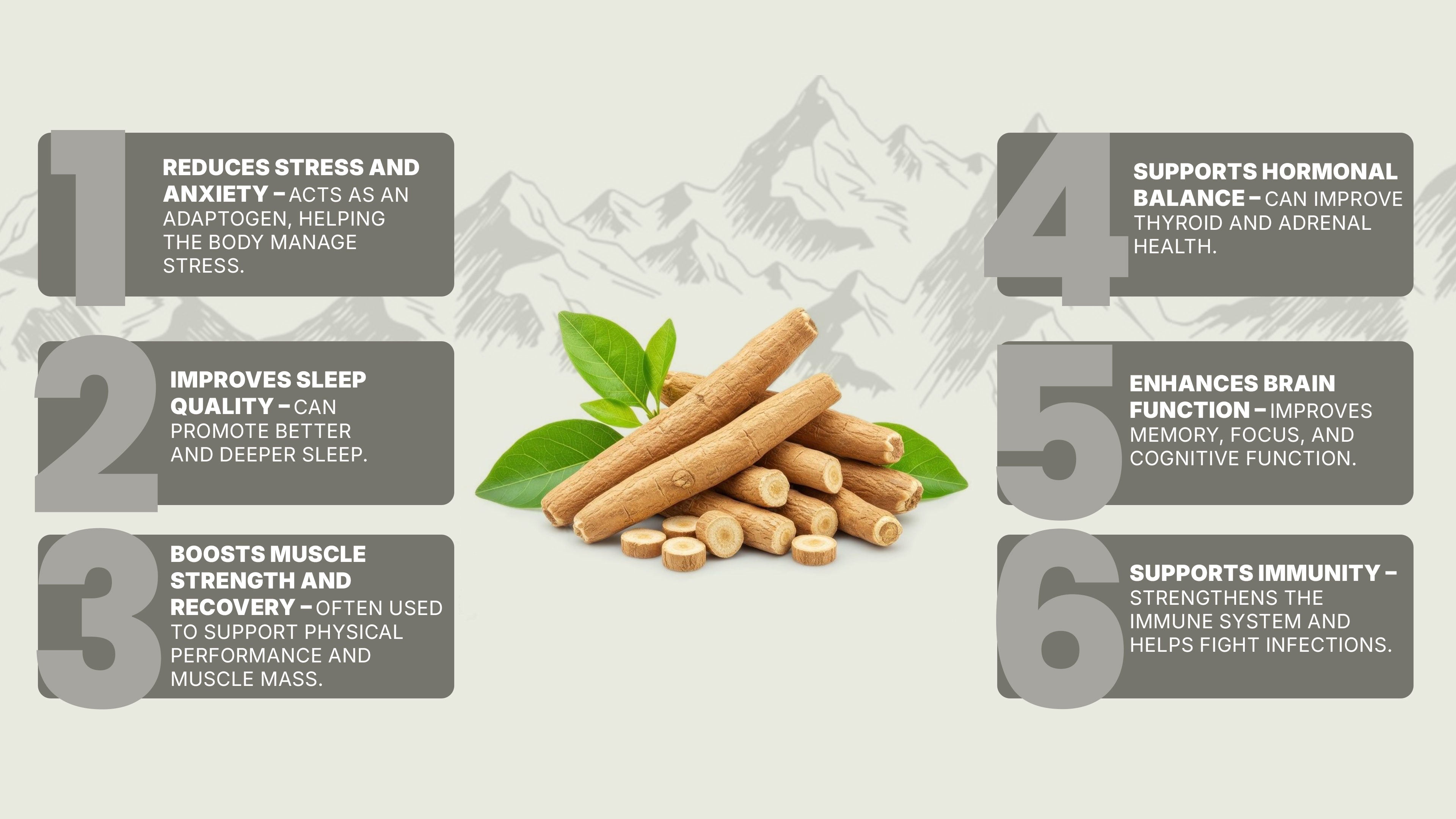 рдЕрд╢реНрд╡рдЧрдВрдзрд╛ рдЬрдбрд╝ рдкрд╛рдЙрдбрд░ рдПрдХ рдкреНрд░рд╛рдХреГрддрд┐рдХ рдкреВрд░рдХ рд╣реИ рдЬреЛ рд╕рджрд┐рдпреЛрдВ рд╕реЗ рдЖрдпреБрд░реНрд╡реЗрдж рдореЗрдВ рд╕реНрд╡рд╛рд╕реНрдереНрдп рдФрд░ рддрдВрджреБрд░реБрд╕реНрддреА рдХреЛ рдмрдврд╝рд╛рдиреЗ рдХреЗ рд▓рд┐рдП рдЙрдкрдпреЛрдЧ рд╣реЛрддрд╛ рдЖрдпрд╛ рд╣реИред рдЕрд╢реНрд╡рдЧрдВрдзрд╛ рдкреМрдзреЗ рдХреА рдЬрдбрд╝ рд╕реЗ рдмрдирд╛, рдпрд╣ рдкрд╛рдЙрдбрд░ рдПрдВрдЯреАрдСрдХреНрд╕рд┐рдбреЗрдВрдЯреНрд╕ рдФрд░ рдПрдбреЗрдкреНрдЯреЛрдЬреЗрдиреНрд╕ рдХрд╛ рдПрдХ рд╕рдореГрджреНрдз рд╕реНрд░реЛрдд рд╣реИ, рдЬреЛ рддрдирд╛рд╡ рдХреЛ рдХрдо рдХрд░рдиреЗ, рдорд╕реНрддрд┐рд╖реНрдХ рдХрд╛рд░реНрдп рдХреЛ рд╕реБрдзрд╛рд░рдиреЗ рдФрд░ рдКрд░реНрдЬрд╛ рд╕реНрддрд░реЛрдВ рдХреЛ рдмрдврд╝рд╛рдиреЗ рдореЗрдВ рдорджрдж рдХрд░рддрд╛ рд╣реИред