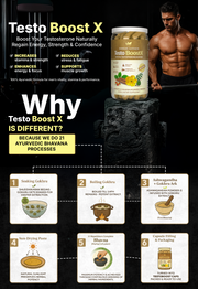 TestoBoostX is a premium Ayurvedic supplement made from high-quality Ashwagandha and Gokshura – crafted using the traditional 21 Bhavna process to enhance its potency and bio-absorption.