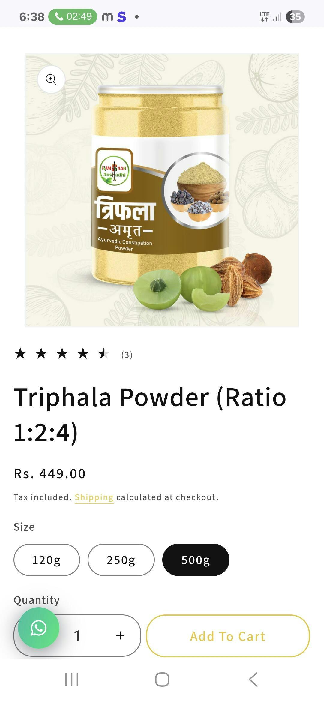 рд╣рдорд╛рд░рд╛ рддреНрд░рд┐рдлрд▓рд╛ рдкрд╛рдЙрдбрд░ рдкрд╛рд░рдВрдкрд░рд┐рдХ 1:2:4 рдЕрдиреБрдкрд╛рдд рдореЗрдВ рдЖрдВрд╡рд▓рд╛, рд╣рд░рдбрд╝ рдФрд░ рдмрд╣реЗрдбрд╝рд╛ рд╕реЗ рддреИрдпрд╛рд░ рдХрд┐рдпрд╛ рдЧрдпрд╛ рд╣реИред рдпрд╣ рдПрдХ рдкреНрд░рд╛рдЪреАрди рд╕рдВрдпреЛрдЬрди рд╣реИ, рдЬрд┐рд╕реЗ рдкреНрд░рд╛рдХреГрддрд┐рдХ рд░реВрдк рд╕реЗ рддреИрдпрд╛рд░ рдХрд┐рдпрд╛ рдЧрдпрд╛ рд╣реИред